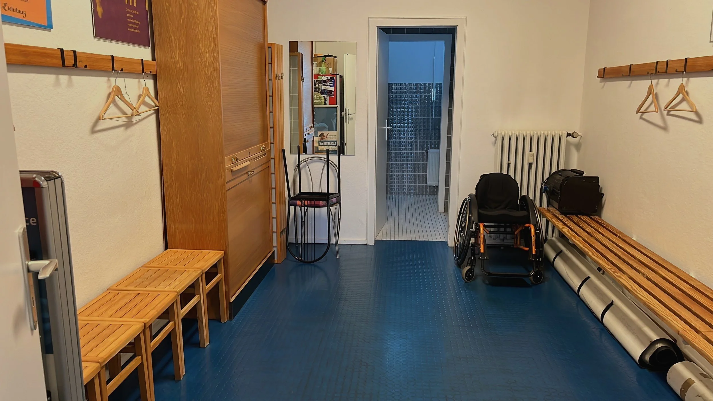 The rental includes the dance hall, cloakroom, shower and WC as well as a barrier-free entrance area with wheelchair platform lift and a terrace (9 sqm) outside.